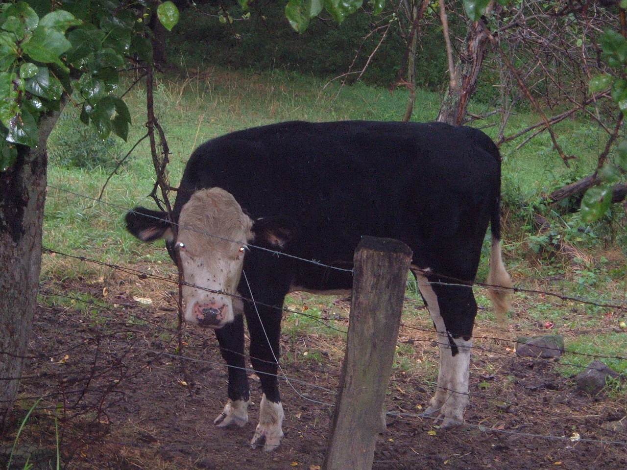 On the way to Columbus I stayed at a farm owned by Dennis. He raises beef cows! Here is a possessed one. Note the multitude of flies (Beelzebub) and that certain unmistakable glow in the eyes...